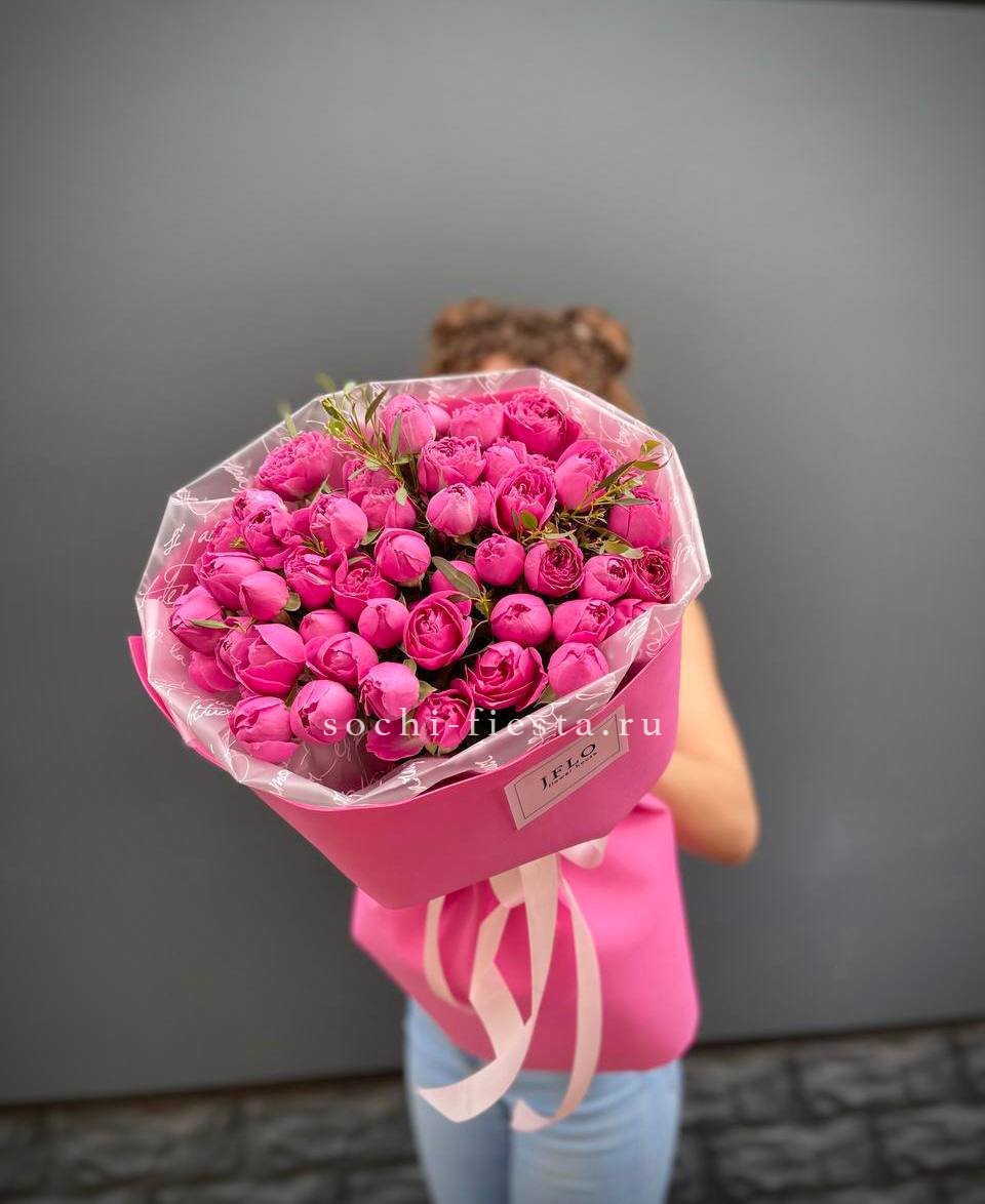 Двадцать девять роз с плотными бутонами насыщенного розового оттенка собраны в классический букет. Джумилия раскрывается постепенно, держит форму долго и радует глубиной цвета. Универсальное решение для выражения чувств без лишних слов.