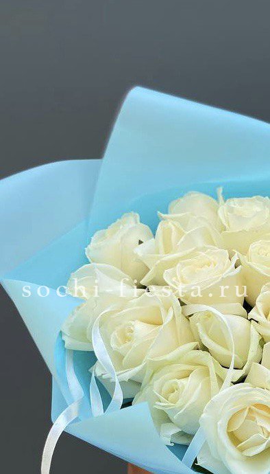 51 белая роза, лента, тишью, пленка.