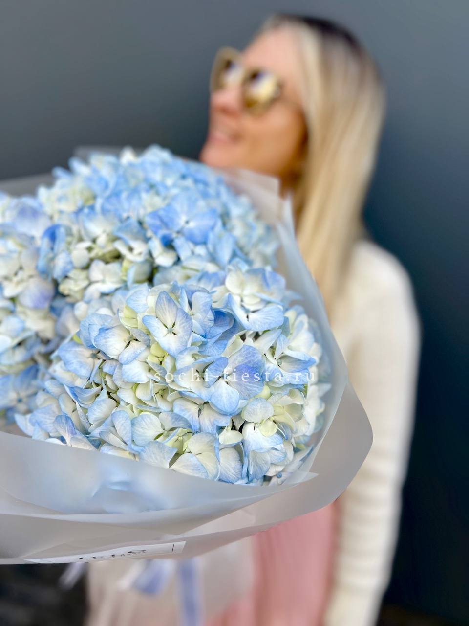 гортензия 15 шт., лента, дизайнерская упаковка.