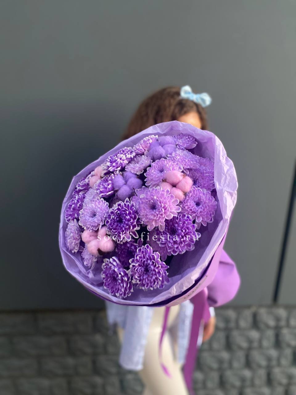 хризантема кустовая - 5шт., хлопок-5, оформление, лента.