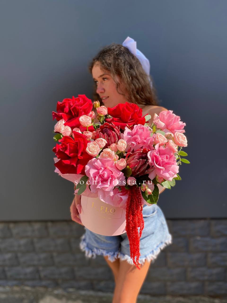 розы, альстромерии, хризантемы, диантусы, цилиндр D13,оазис, тишью.