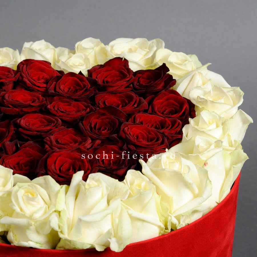 белые розы, красные розы, цилиндр D16,  лента.