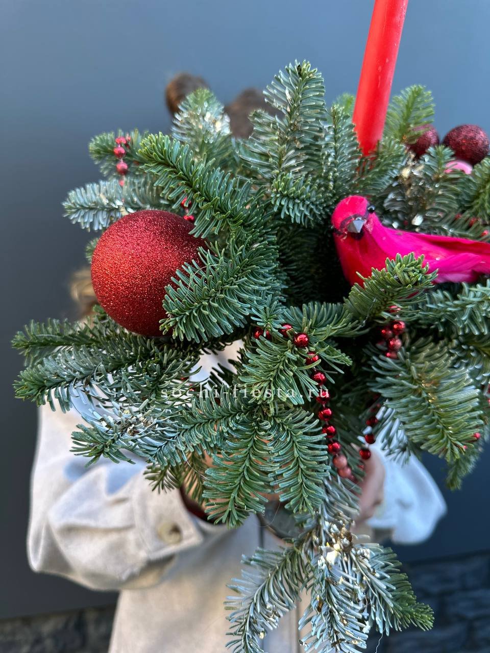 нобилис, цилиндр, оазис, свечи, новогодние игрушки, декор ВНИМАНИЕ! Готовая композиция (декор) может иметь незначительные внешние отличия от примера на фотографии.