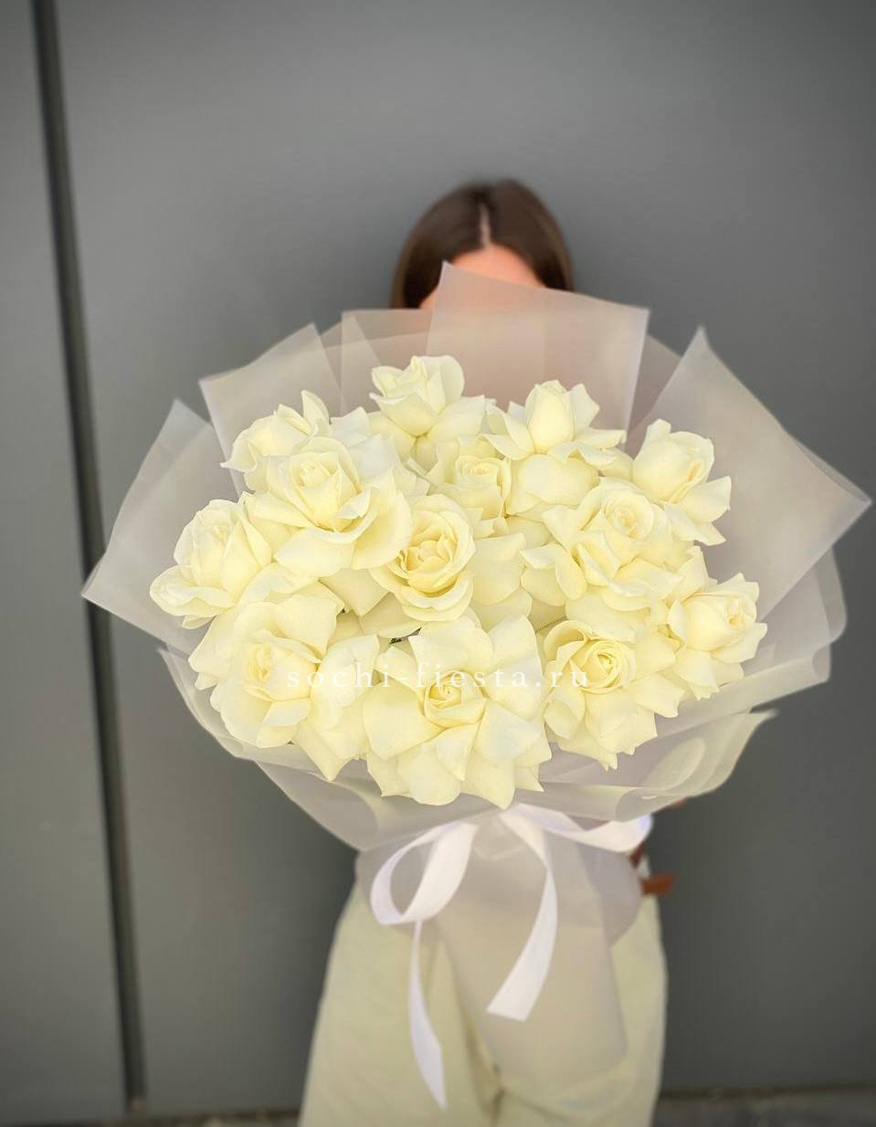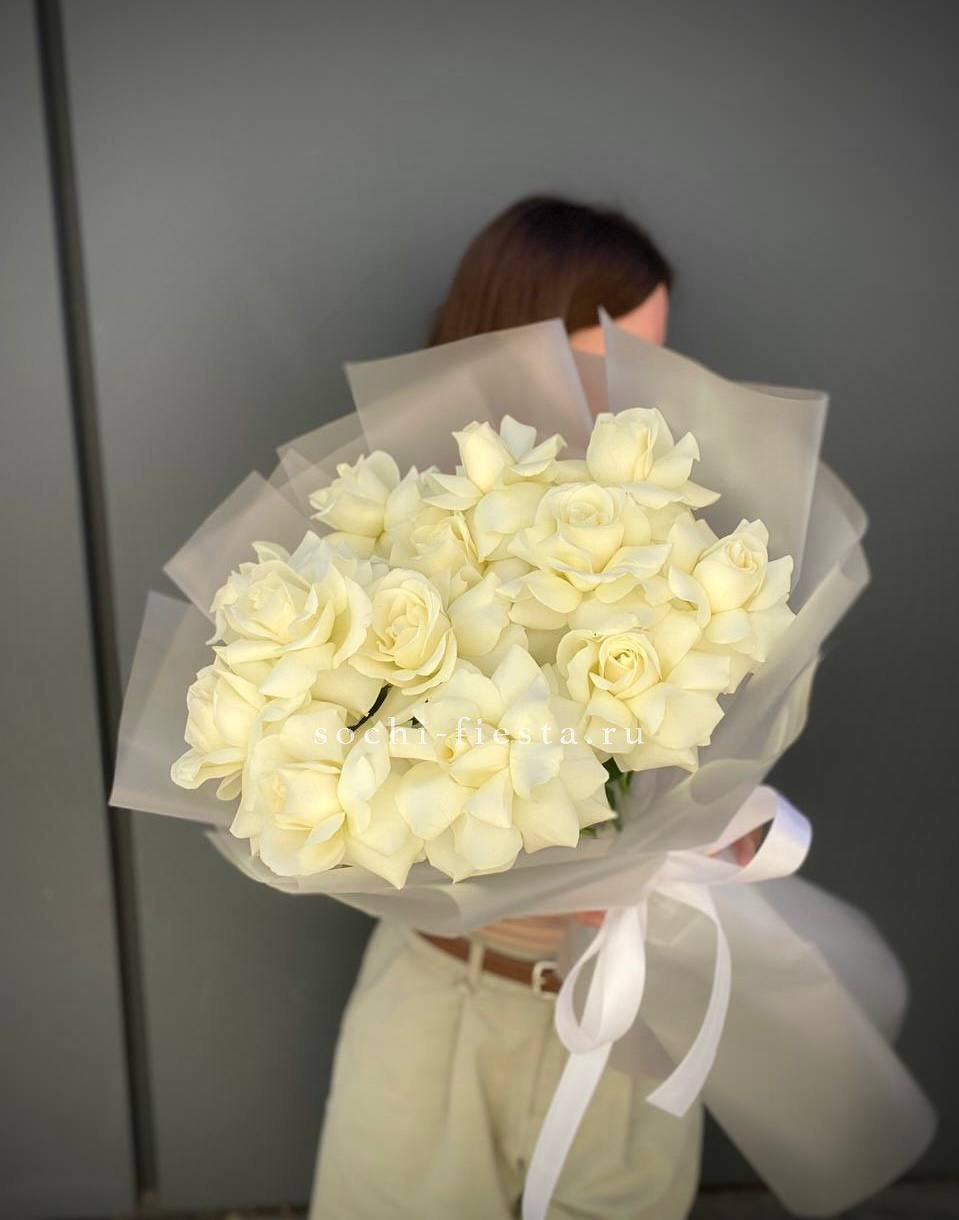 15 белых роз в сумочке