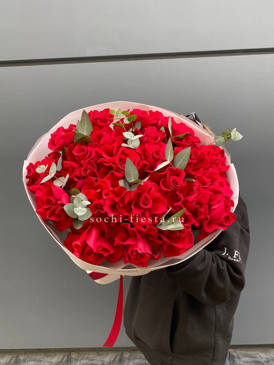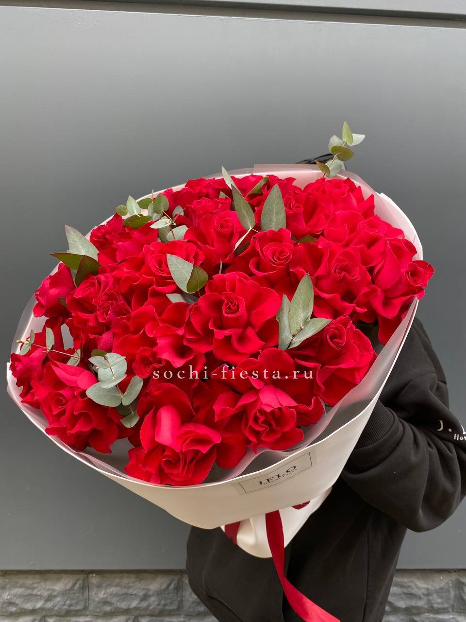 вывернутые розы - 7 шт., эвкалипт - 2шт., лента, авторская упаковка.