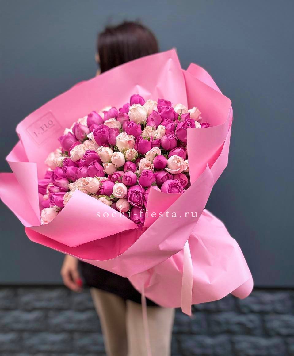 Мы работаем только со свежими цветами — букеты радуют от 7 до 14 дней и дольше при правильном уходе.