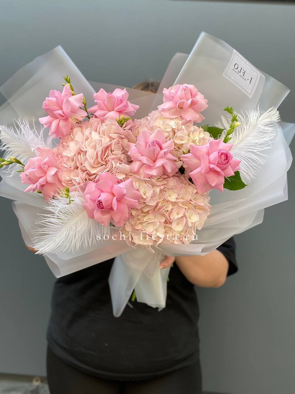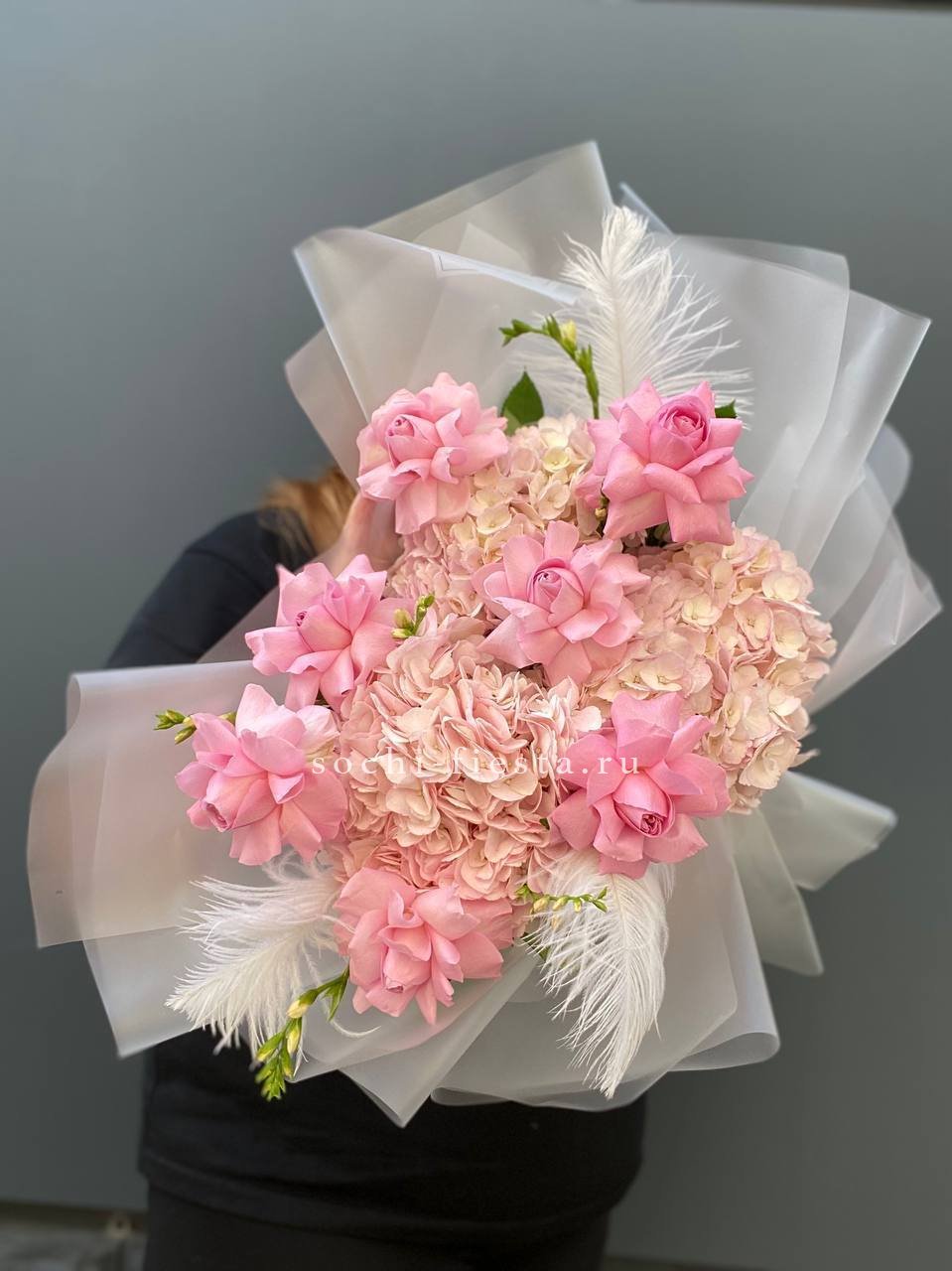 Букет белых гортензий и пионовидных роз