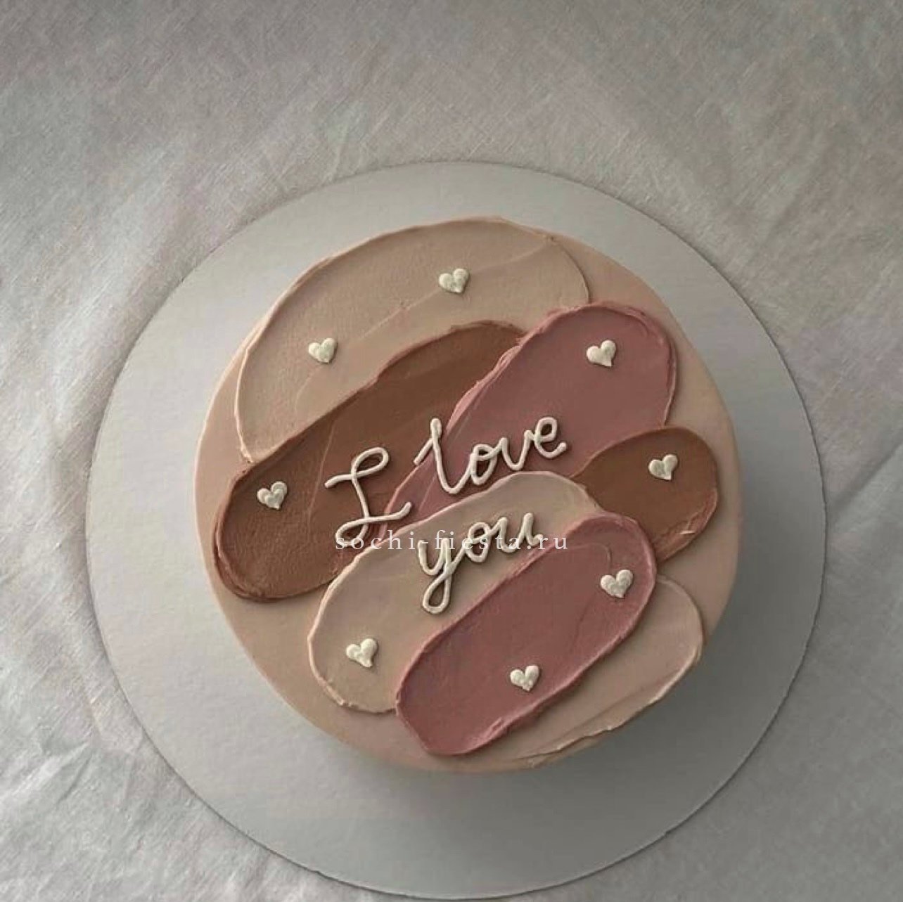 Три слова на поверхности торта говорят без лишних объяснений. Крем и декор создают завершенную картинку в формате персональной порции. Начинка на выбор делает момент еще приятнее.