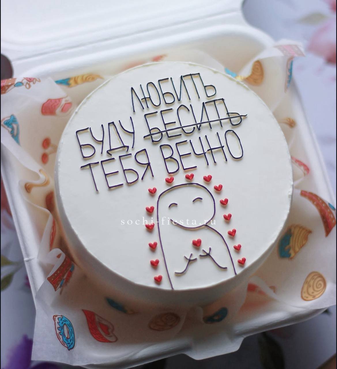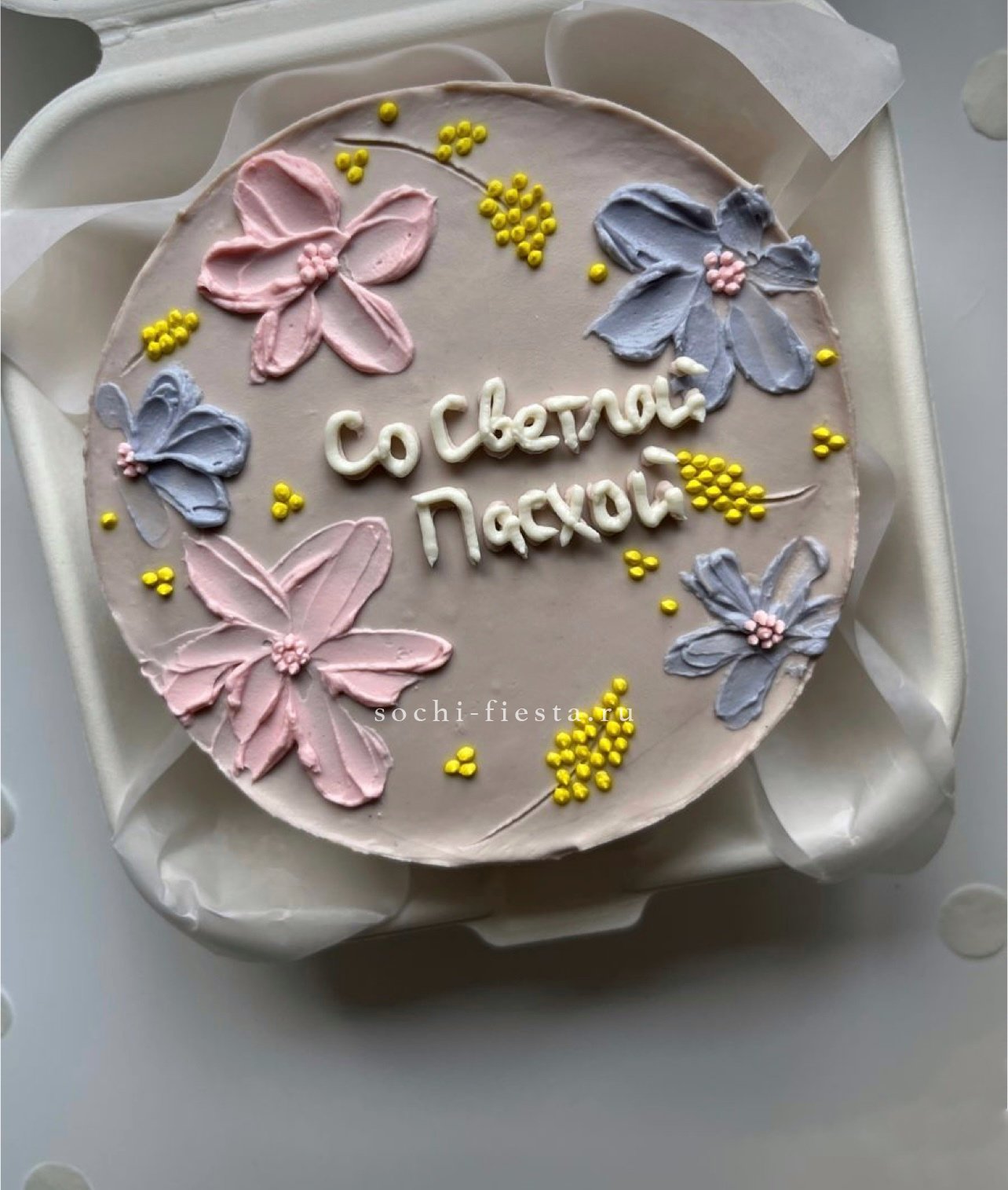Дизайнерский бенто-торт ручной работы с поздравительной надписью и готовым декором. Формат удобен для камерного чаепития или как дополнение к основному подарку.
